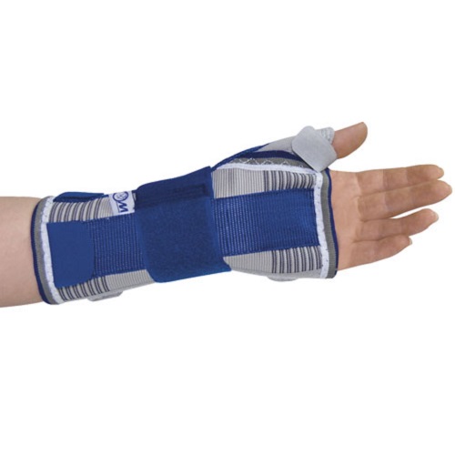 Жорсткий ортез Алком 3018 для фіксації лучезапястного суглоба з відведенням великого пальця руки. Рекомендується носити бандаж в якості альтернативи гіпсової лонгети.