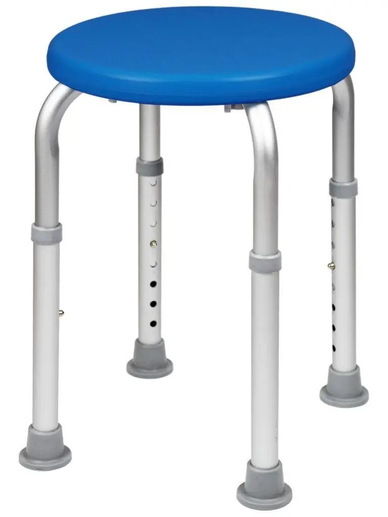 Табурет для душа алюмінієвий з пластиковим сидінням. Полегшує санітарні процедури людям з обмеженими фізичними можливостями, людей похилого віку. Його рекомендується використовувати у душі, ванній і інших приміщеннях, у будинку та лікарні.