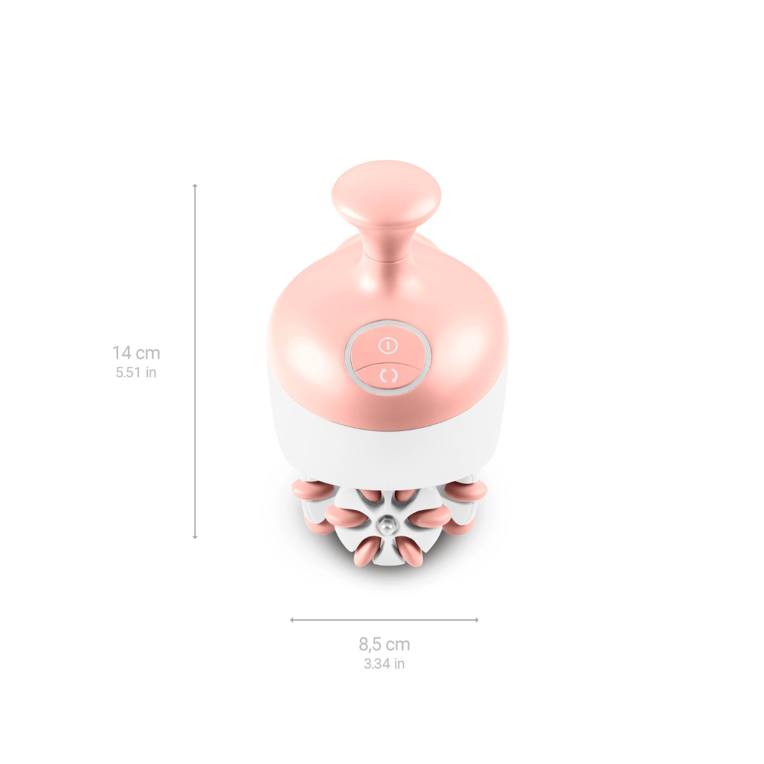 Масажер AC 950 покращує зовнішній вигляд шкіри, зменшує прояви целюліту за допомогою трьох різних насадок (різноспрямований масажний ролик, щетинна силіконова щітка, силіконова щітка). Завдяки ергономічній ручці можна дістати важкодоступних ділянок тіла. Регулярне застосування антицелюлітного масажера відновлює венозну та лімфатичну циркуляцію, зменшує прояви целюліту та підтягує шкіру.