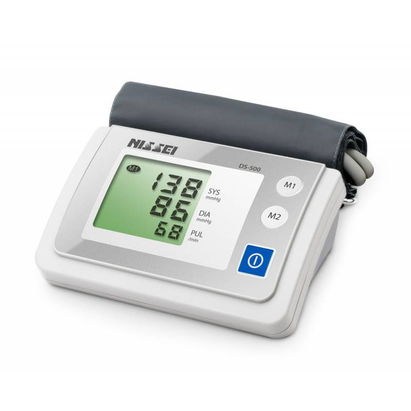 Повнофункціональний автоматичний електронний тонометр DS-500 виробництва японської компанії NISSEI поставляється в комплекті з адаптером живлення від електромережі та ідеально підходить для домашнього використання. Цей тонометр компактний, простий у використанні. Вимірювання тиску проводиться лише в один натиск кнопки. Прилад не перевантажений особливими функціями та відрізняється привабливою ціною.