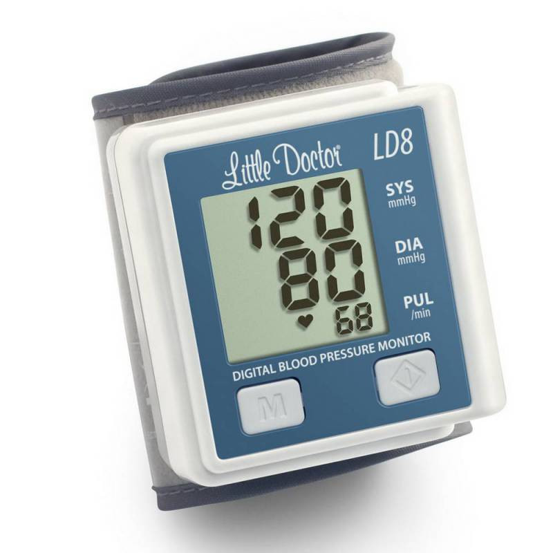 Тонометр на зап'ястя Little Doctor LD8 простий у використанні та вирізняється невисокою ціною. Манжета цього тонометра збільшена та має коло до 20,5 см. У пам'яті приладу зберігається до 90 вимірювань з функцією обчислення середнього значення трьох останніх вимірювань. Для зберігання приладу поставляється пластиковий контейнер. Це один із найлегших і компактніших тонометрів на зап'ясті.