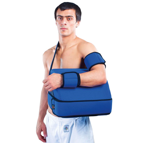 Бандаж верхньої кінцівки з подушкою для абдукційної установки під кутом 45 градусів забезпечує надійну фіксацію плечового суглоба у фізіологічно правильному положенні відведення із зовнішньою ротацією плеча, перешкоджаючи утворенню спайок. Забезпечує знерухомлення плечового суглоба, акроміально-ключичного зчленування лопатки та розвантаження капсули плечового суглоба.