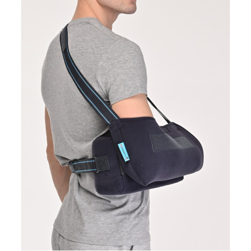 Подушка для абдукційної установки під кутом 10 градусів фіксується на ремені уздовж талії, а косинковий бандаж з вкладеною в нього рукою закріплюється за допомогою текстильної застібки. Подушка анатомічної форми зміщує руку латерально і розвантажує лімб суглобової западини лопатки. Відведення руки на 10 градусів є профілактикою адгезивного капсуліту.