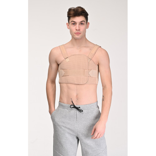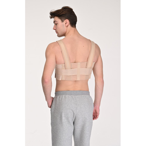Бандаж реберний післяопераційний роз'ємний на грудну клітку, чоловічий, анатомічної форми виготовляється з еластичного бандажного полотна і сучасного багатошарового матеріалу, призначений для використання після операцій на грудній клітці, після ударів і переломів ребер, а також після травм грудної клітки.