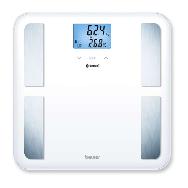 Діагностичні ваги забезпечують миттєвий огляд стану організму. Вага, жирова і кісткова маса, кількість рідини і м'язової тканини, ІМТ і витрата калорій виводяться на дисплей і передаються в додаток Beurer HealthManager по Bluetooth®.