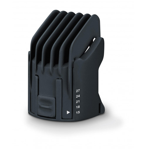 - 10 різних довжин стрижки завдяки двом регульованим по довжині насадкам-гребеням: 1-12 мм і 15-27 мм