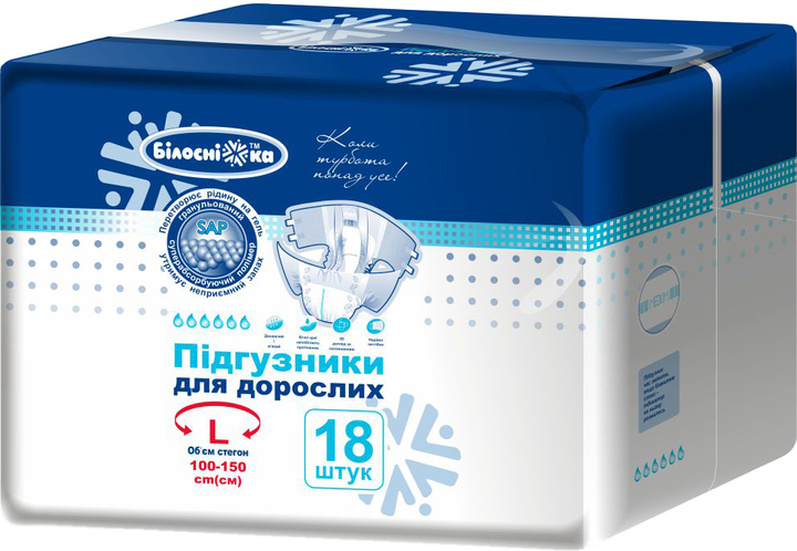 Опис Підгузки для дорослих "Білосніжка" 6 крапель L 18 шт