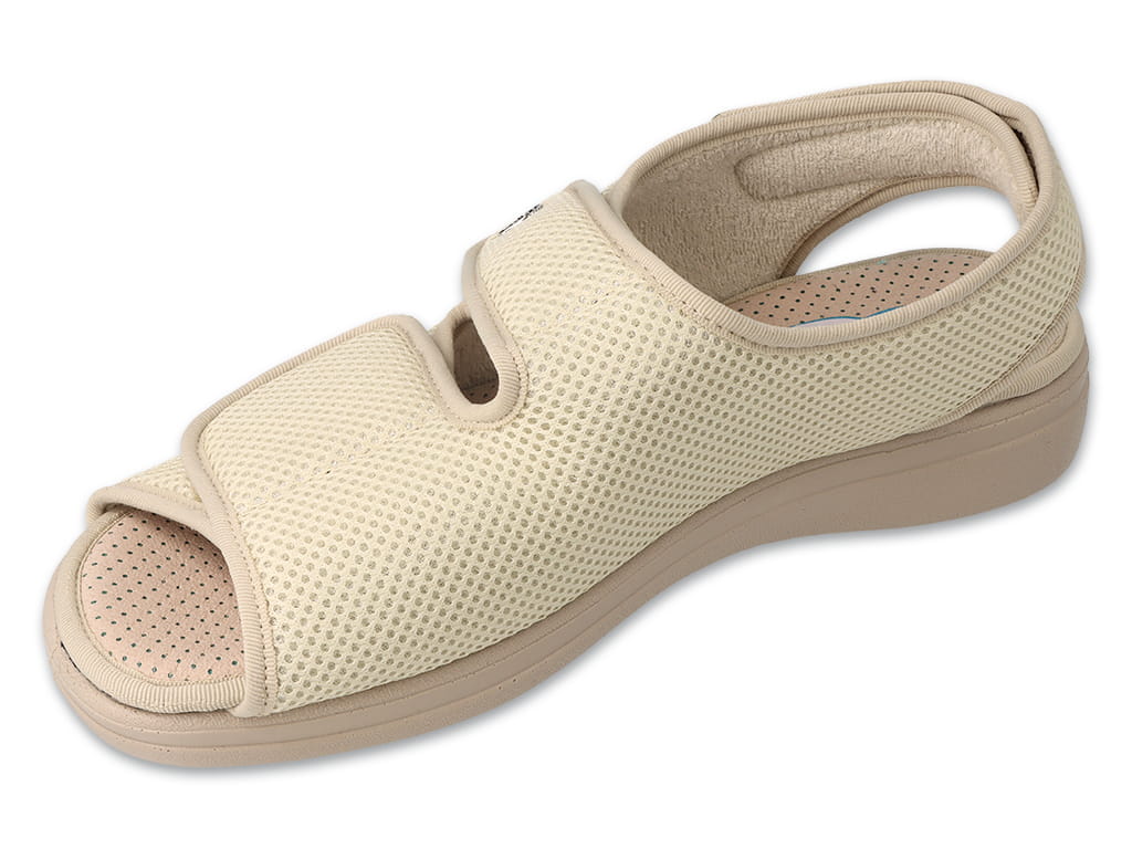 БрендDrOrto КолірБежевий Країна виробникПольща Вид взуттяСандалі Матеріал верхуТекстиль Матеріал підкладкиМікрофібра SILBER з іонами срібла Матеріал підошвиПоліуретан ЗастібкаЛипучка Velcro Розмір жіночого взуття41