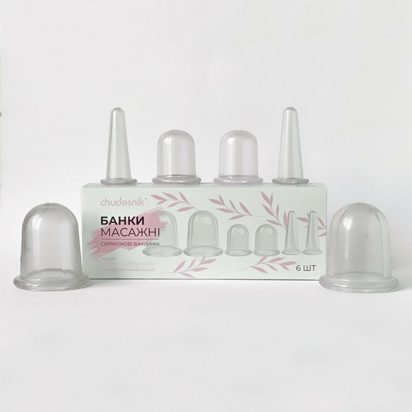 Опис Набір масажних банок для обличчя та тіла Chudesnik 6 шт.