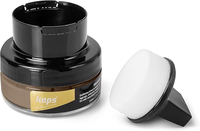 Мягкий крем для взуття з аплікатором Kaps Delicate Cream z aplicatorem доглядає та відновлює колір усіх видів виробів з гладкої, тонко виробленої та делікатно фарбованої шкіри (наппи, аніліну тощо).