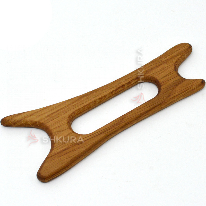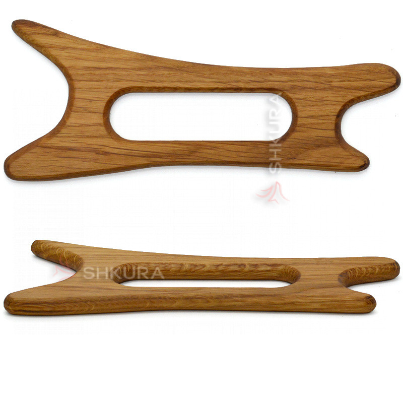 Масажер Гуаша для тіла виготовлений з дубового дерева. Має універсальну форму, яка дозволяє робити масаж різних частин тіла: обличчя, голову, руки і ноги, спину. За допомогою скребка можна проводити різні техніки масажу: антицелюлітний, розслаблюючий, масаж для покращення кровообігу.
