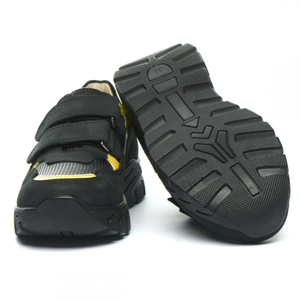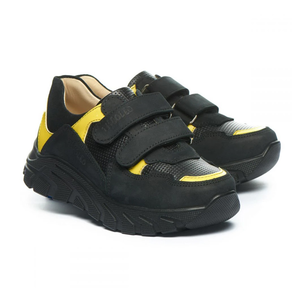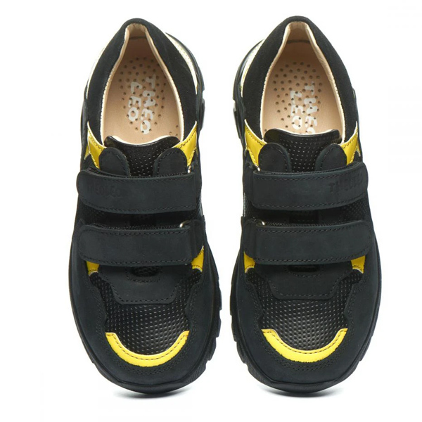 Дитячі демісезонні кросівки Theo Leo 1236 чорного кольору, з жовтими вставками.