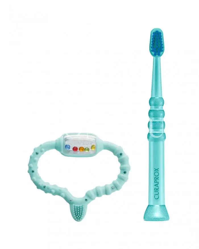 Набір із усім необхідним дитині для спокійного та здорового початку догляду за ротовою порожниною. Цей милий набір містить чарівне кільце для прорізування зубів, біофункціональну пустушку та тримач пустушки, а також ультрам’яку дитячу зубну щітку для ефективного та дбайливого очищення. Цей чудовий подарунок доступний у трьох кольорах: рожевому, блакитному та бірюзовому. Батьки, діти та майбутні зуби можуть з нетерпінням чекати на наступні продукти: