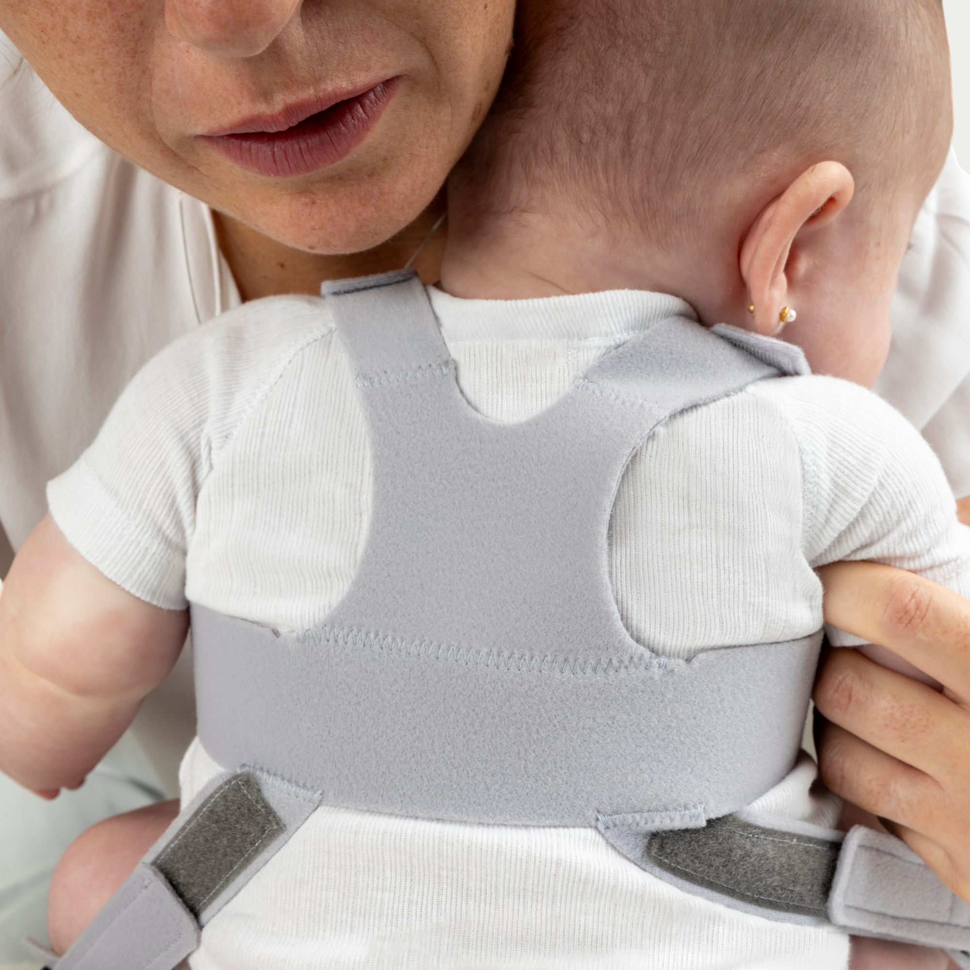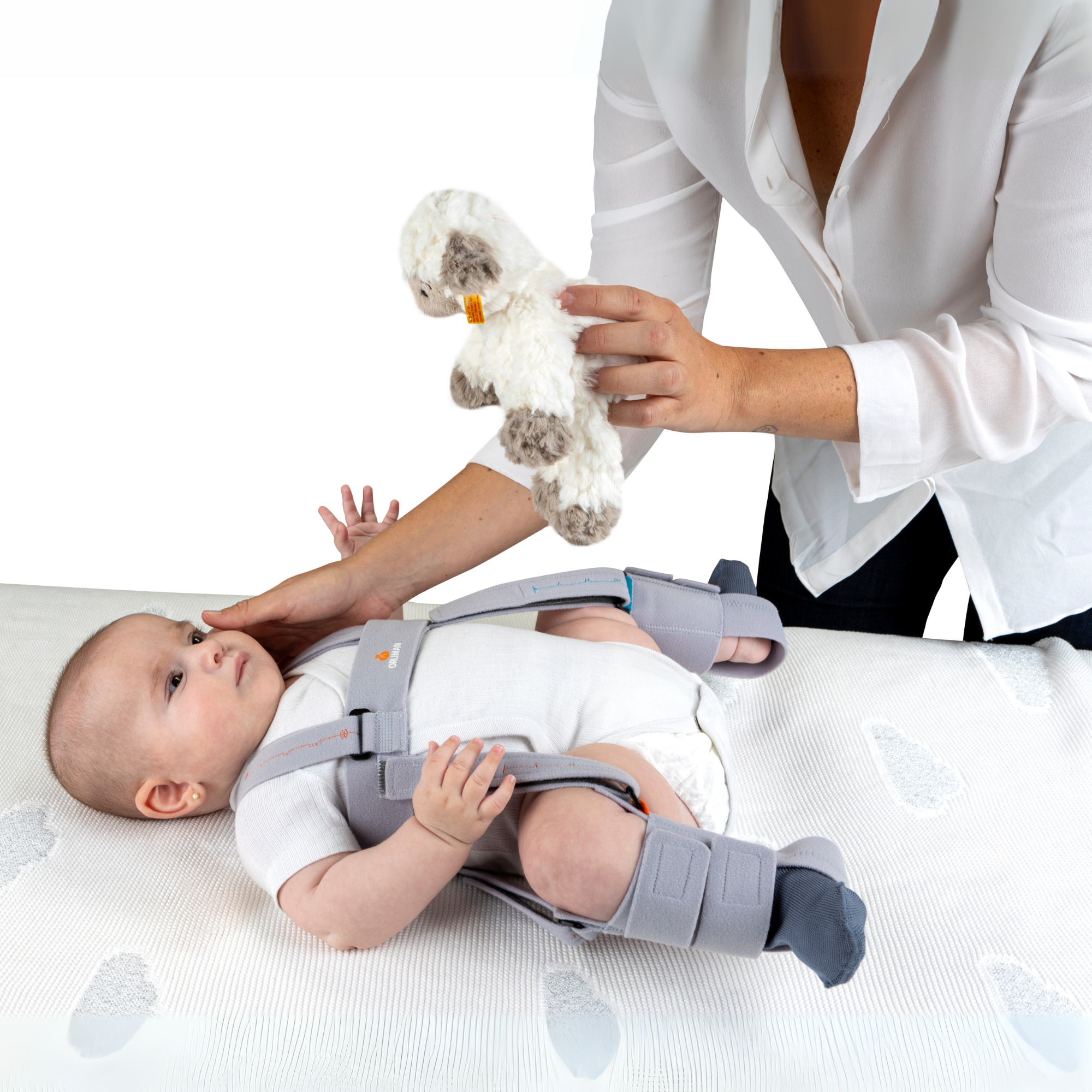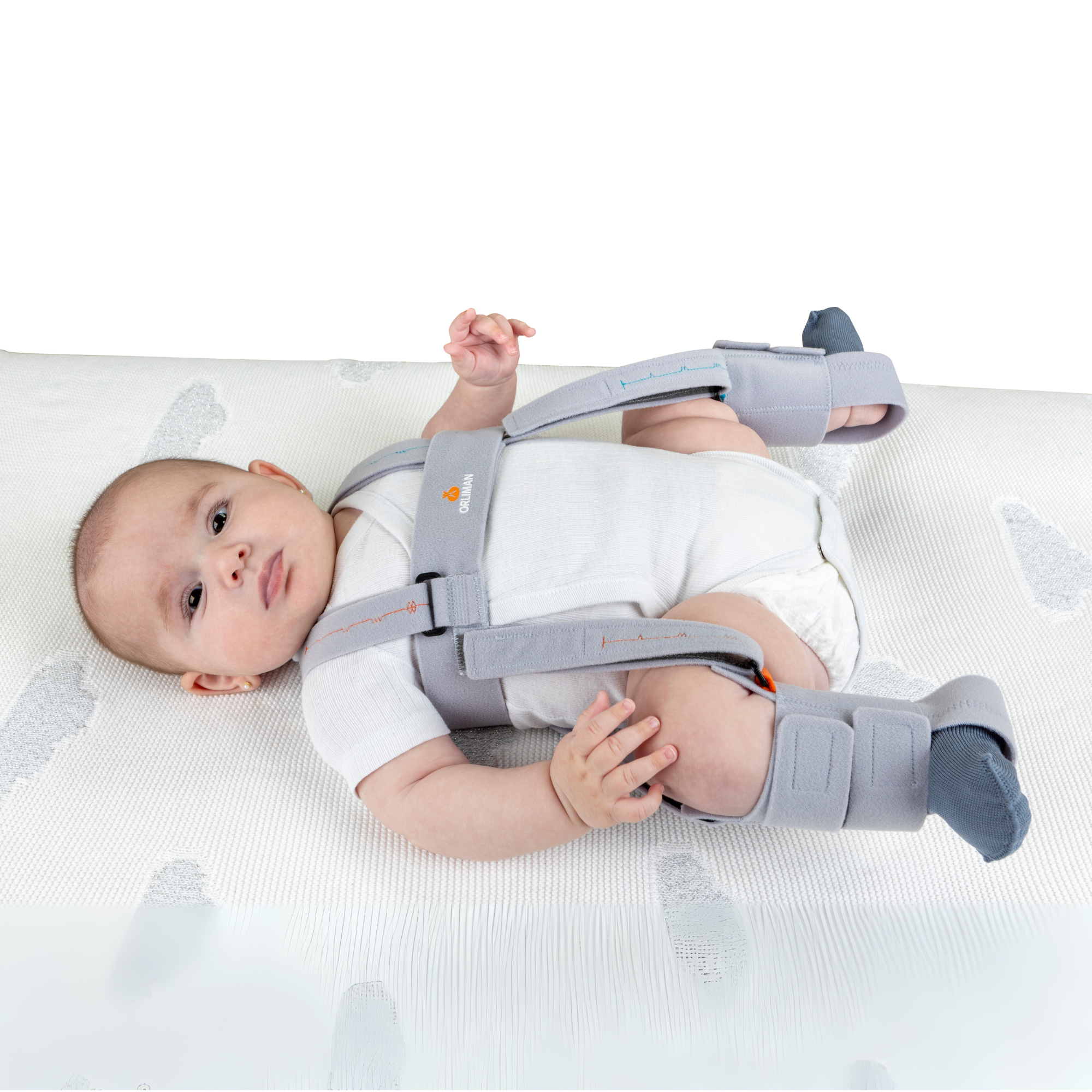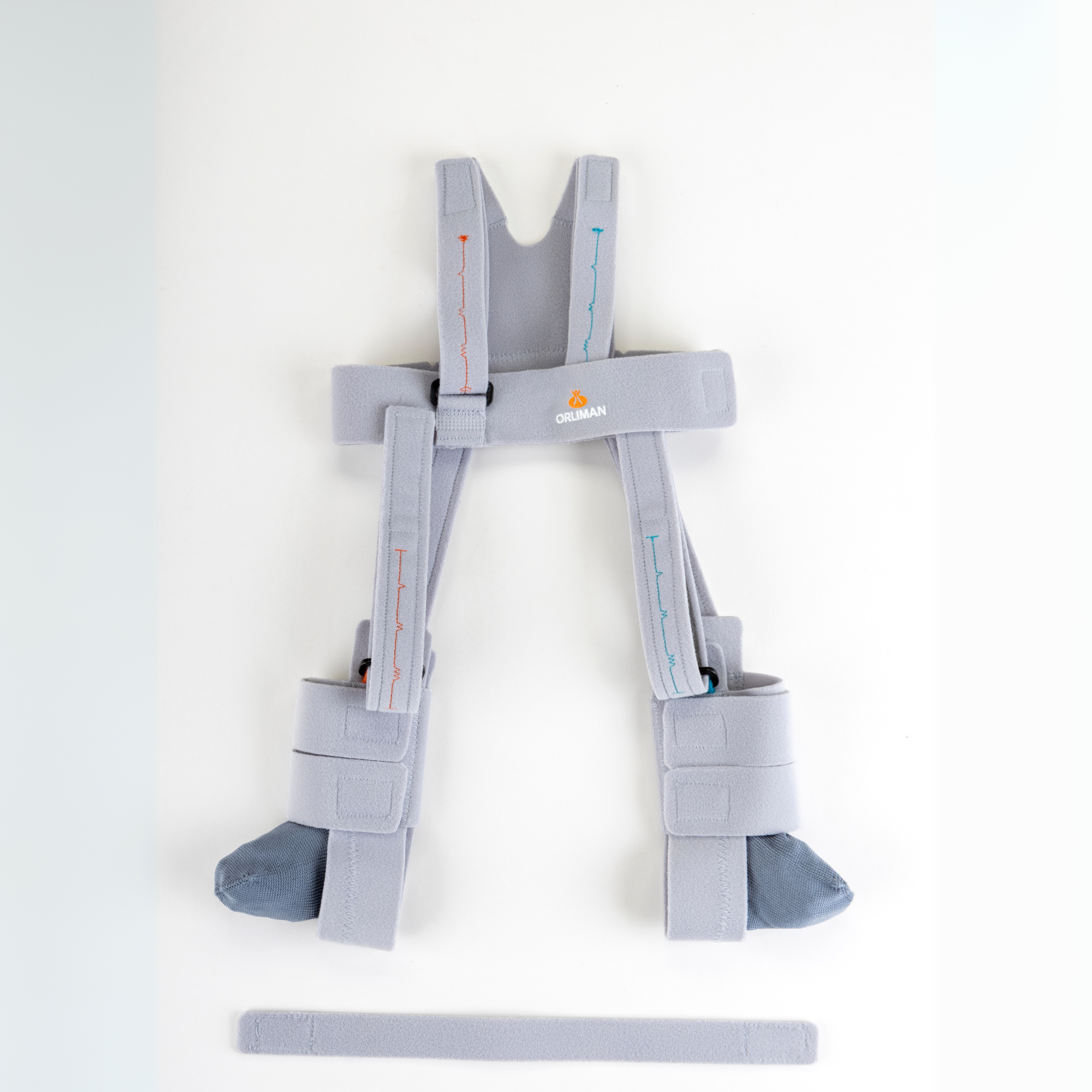 Пристрій виготовлений з урахуванням потреб дитини: неопренові вставки на плечах знижують тиск на шкіру, а зручна система пряжок і липучок дозволяє легко надягати ортез. Вбудовані пінетки з фіксацією запобігають вислизанню стоп, а м’які накладки захищають від натирання. Додаткова абдукційна стрічка забезпечує регульоване розведення стегон під контролем лікаря.