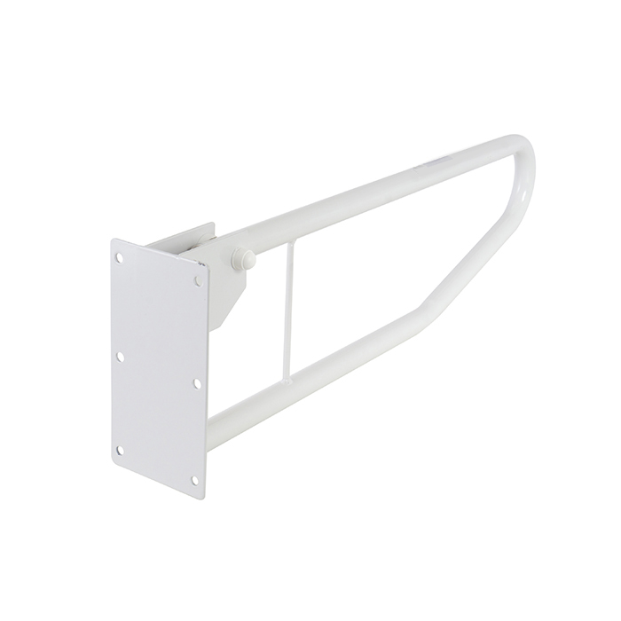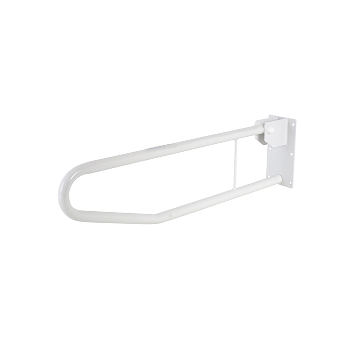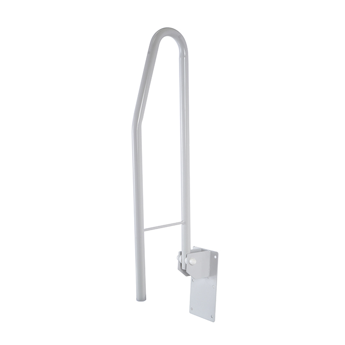 Металевий відкидний поручень, U-подібної форми, призначений для забезпечення безпеки та комфорту у туалетній або у ванній кімнаті. Виріб служить опорою і мінімізує напругу при посадці та підйомі. Поручень стійкий до ударів, подряпин та корозії. Допоможе запобігти забоям та падінням користувачів.