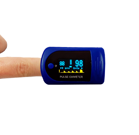 Портативний пульсоксиметр для вимірювання рівня насичення киснем і частоти пульсу.