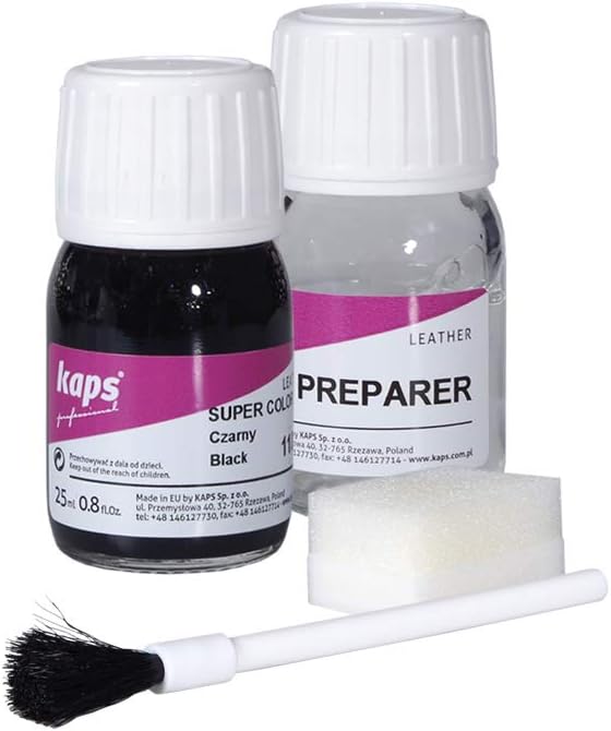 Фарба для взуття + засіб для фарбування Kaps Super Color + Preparer 25 ml використовується для натуральної шкіри, текстилю та синтетики. Має водостійкі властивості. Добре відновлює колір пофарбованої поверхні та зберігає його на тривалий час.