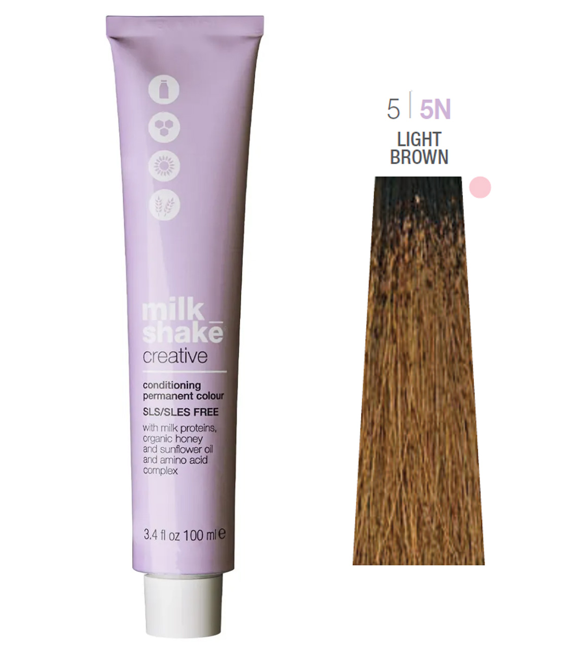 БрендMilk_Shake Об'єм100 мл Країна виробникІталія Колір фарби5/5N Light Brown КласифікаціяПрофесійна СеріяCreative
