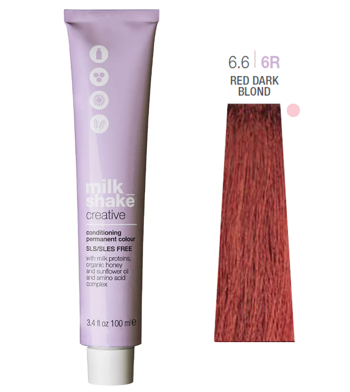 БрендMilk_Shake Об'єм100 мл Країна виробникІталія Колір фарби6.6/6R Red Dark Blond КласифікаціяПрофесійна СеріяCreative