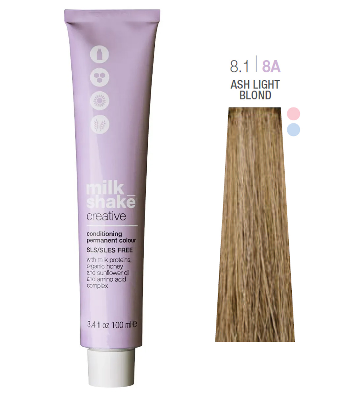 БрендMilk_Shake Об'єм100 мл Країна виробникІталія Колір фарби8.1/8A Ash Light Blond КласифікаціяПрофесійна СеріяCreative