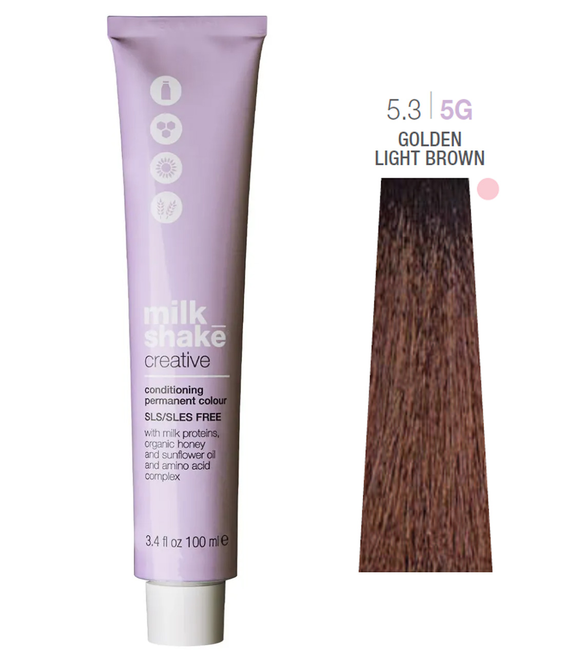 БрендMilk_Shake Об'єм100 мл Країна виробникІталія Колір фарби5.3/5G Golden Light Brown КласифікаціяПрофесійна СеріяCreative