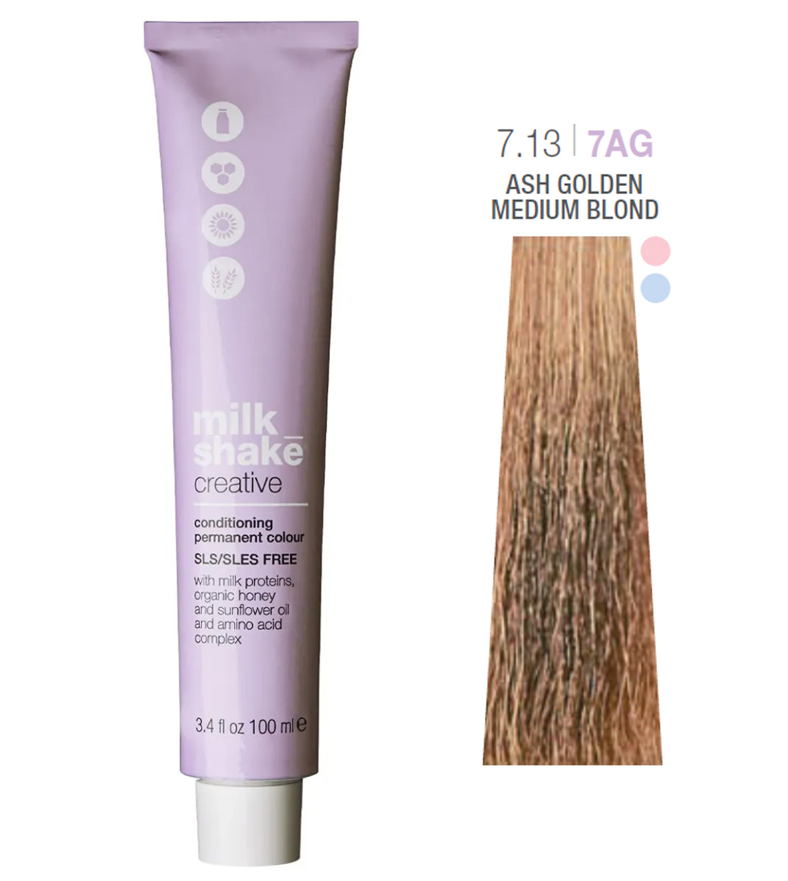 БрендMilk_Shake Об'єм100 мл Країна виробникІталія Колір фарби7.13/7AG Ash Golden Medium Blond КласифікаціяПрофесійна СеріяCreative