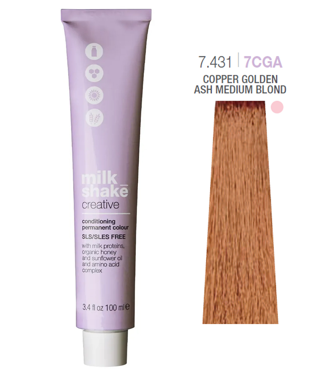 БрендMilk_Shake Об'єм100 мл Країна виробникІталія Колір фарби7.431/7CGA Copper Golden Ash Medium Blond КласифікаціяПрофесійна СеріяCreative