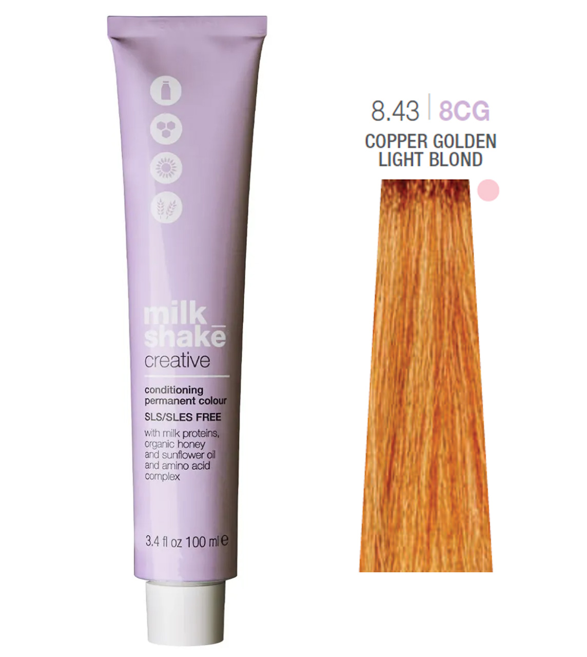 БрендMilk_Shake Об'єм100 мл Країна виробникІталія Колір фарби8.43/8CG Copper Golden Light Blond КласифікаціяПрофесійна СеріяCreative