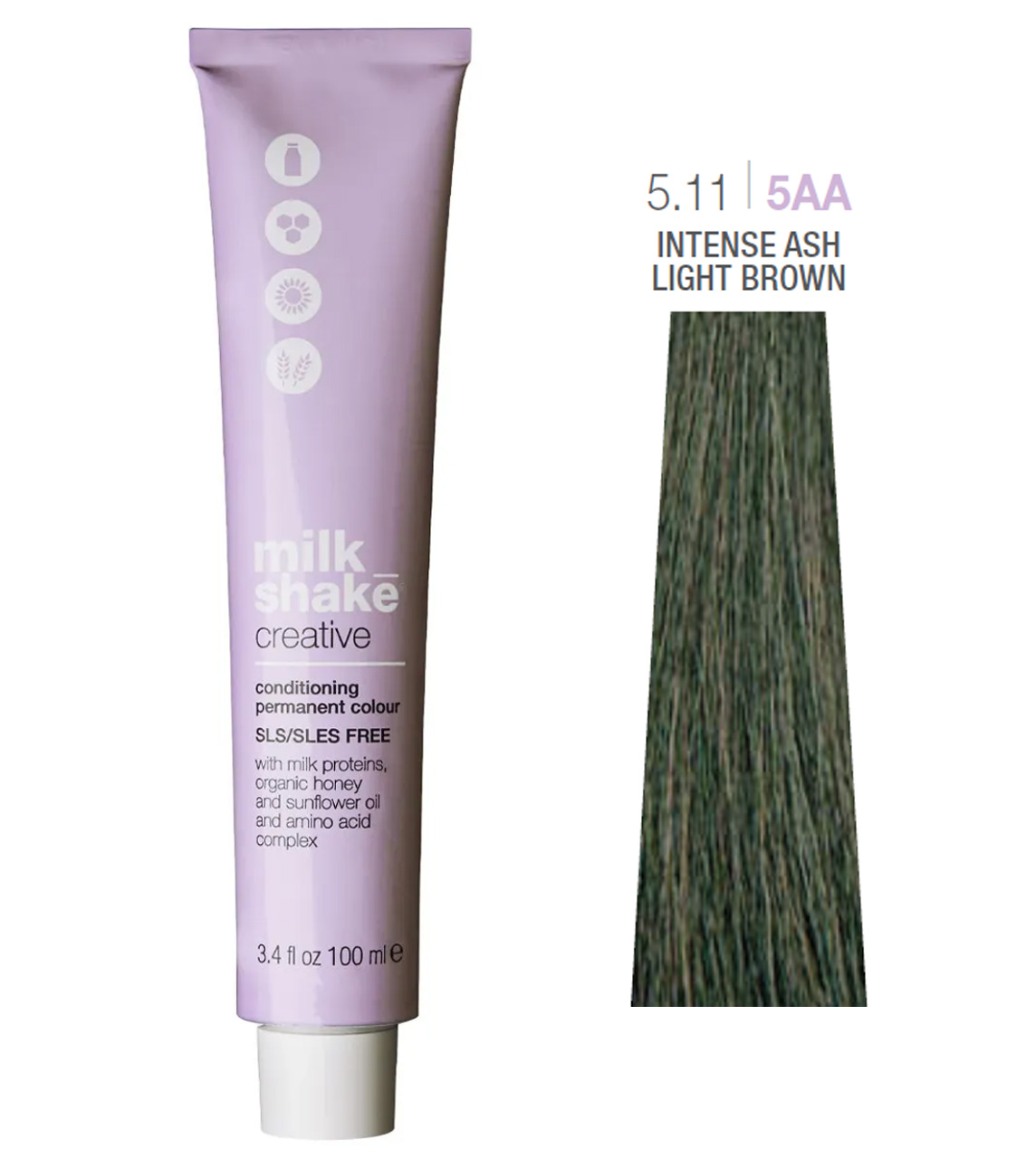 БрендMilk_Shake Об'єм100 мл Країна виробникІталія Колір фарби5.11/5AA Intense Ash Light Brown КласифікаціяПрофесійна СеріяCreative