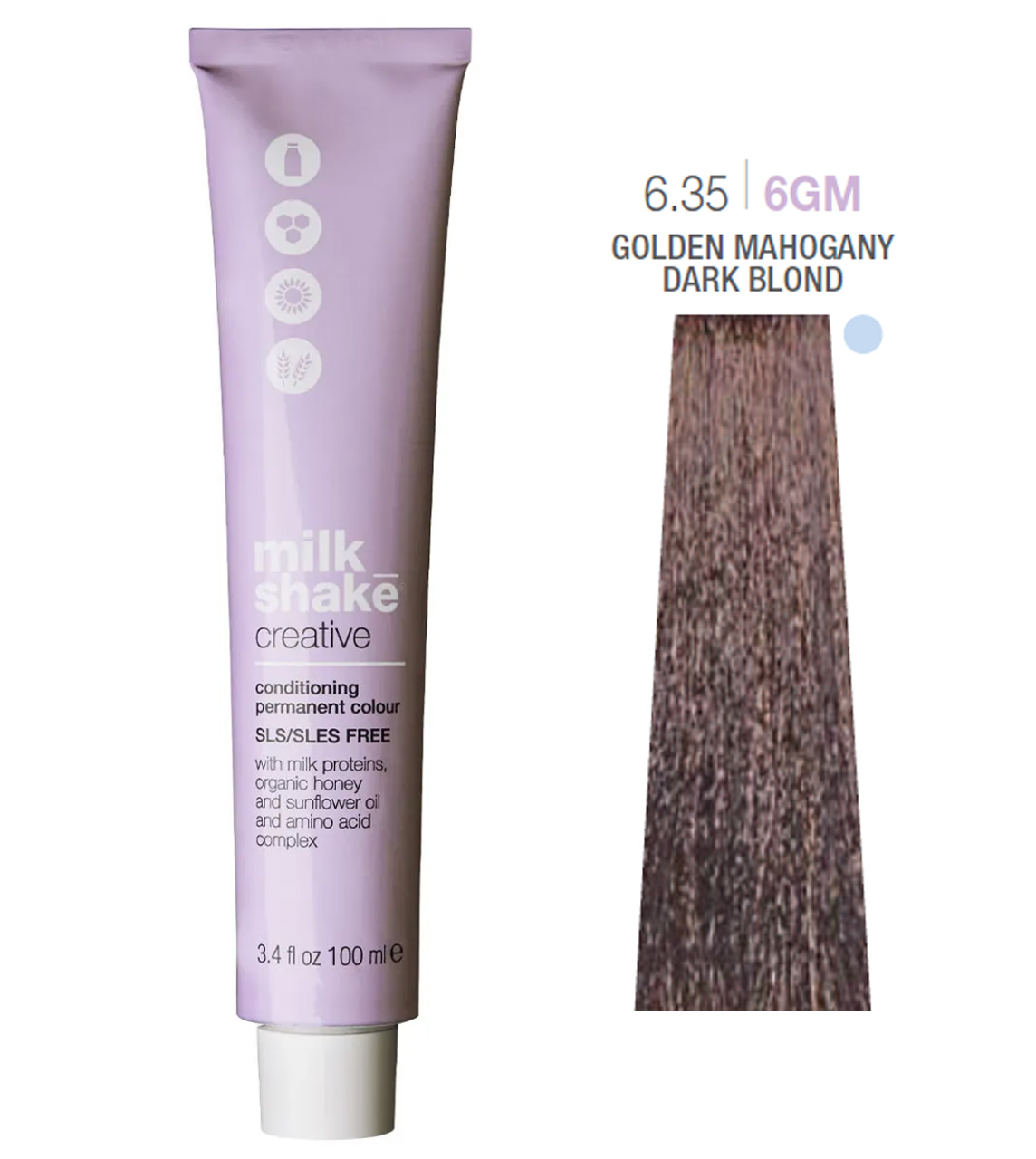 БрендMilk_Shake Об'єм100 мл Країна виробникІталія Колір фарби6.35/6GM Golden Mahogany Dark Blond КласифікаціяПрофесійна СеріяCreative