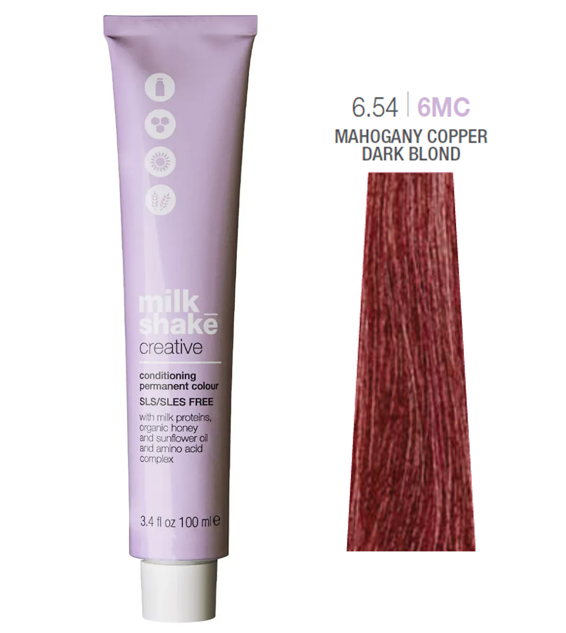 БрендMilk_Shake Об'єм100 мл Країна виробникІталія Колір фарби6.54/6MC Mahogany Copper Dark Blond КласифікаціяПрофесійна СеріяCreative