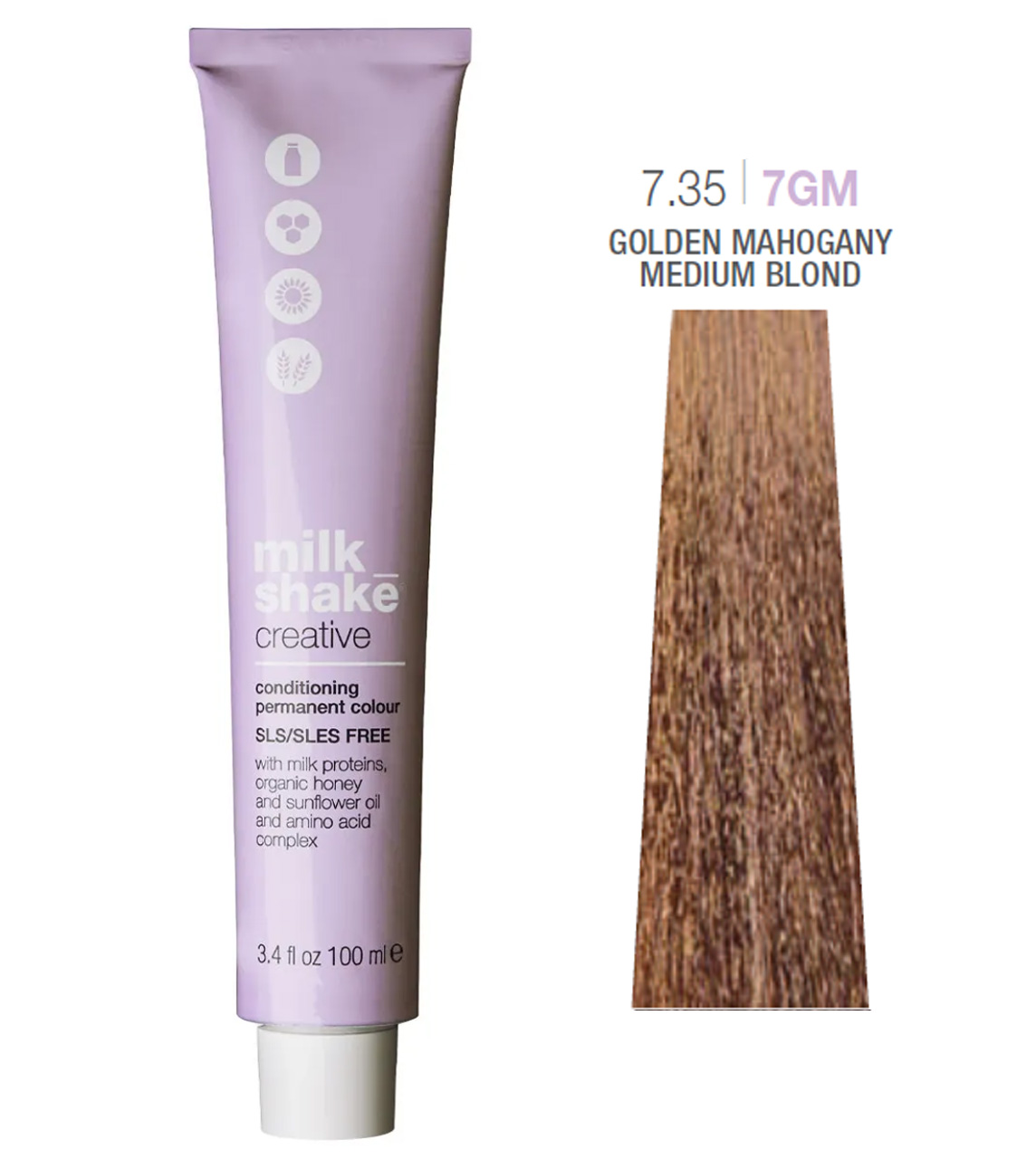 БрендMilk_Shake Об'єм100 мл Країна виробникІталія Колір фарби7.35/7GM Golden Mahogany Medium Blond КласифікаціяПрофесійна СеріяCreative