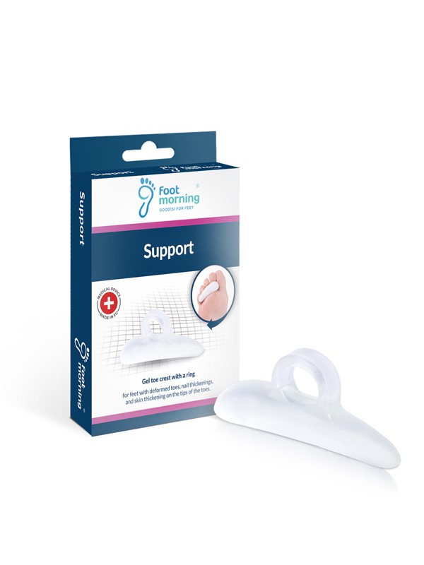 Адаптується до форми стопи та заповнює простір під деформованими пальцями, що збільшує поверхню їх контакту з землею та забезпечує більш рівномірний розподіл тиску на стопу під час ходьби. Це обмежує утворення потовщення нігтів і мозолів на кінчиках пальців. Кільце утримує ортез на стопі в потрібному положенні.