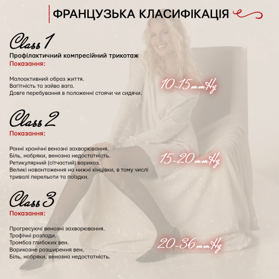 • клінічні показання використання 2 класу компрессії -15-20 мм рт. ст.;