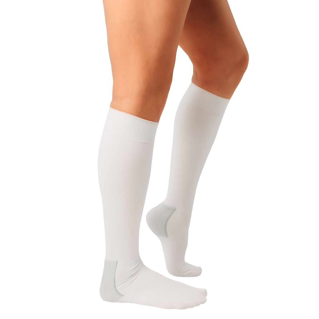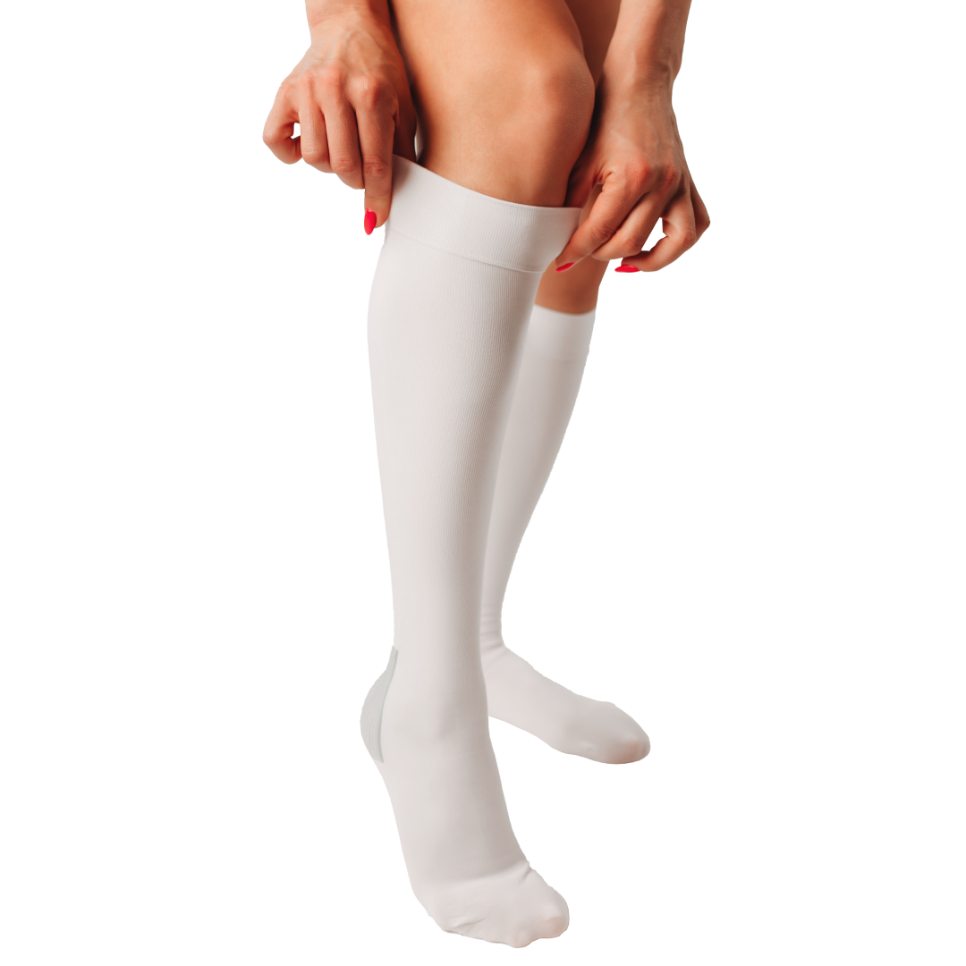 Антиемболічні гольфи Vitamed – компресійний медичний антиемболічний трикотаж із м'якого та міцного волокна Microfilament для максимального ефекту, комфорту та попередження ускладнень у післяопераційний період. Градуйована компресія ефективно розподіляє тиск знизу вгору, найбільший тиск в ділянці гомілки, який поступово зменшується, що сприяє покращенню циркуляції крові.