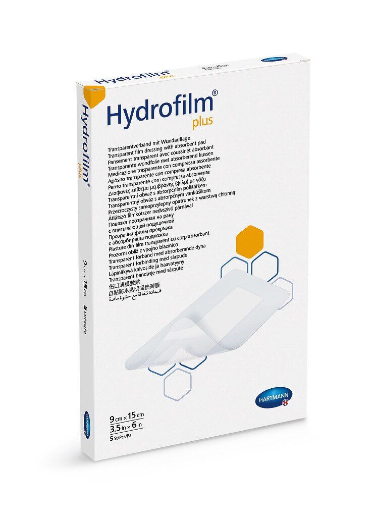 Прозора самофіксуюча пов'язка на рану Hydrofilm plus використовується для стерильного догляду при незначних пошкодженнях шкіри і як надійний захист від вторинної інфекції. Пов'язка стерильна.