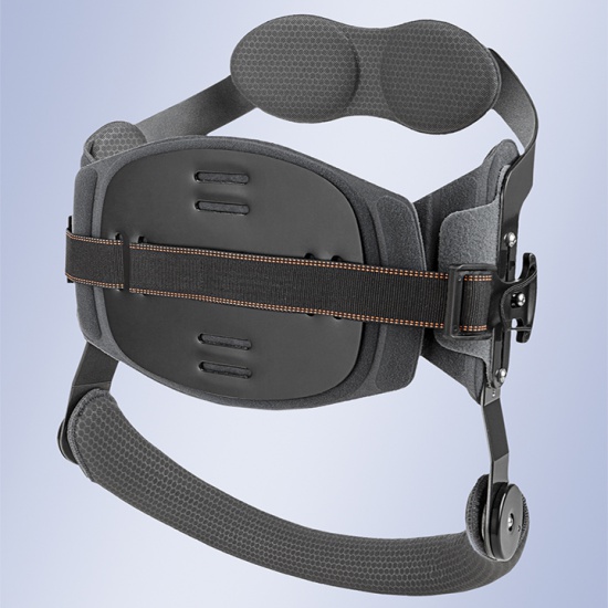 Включає нову тривимірну регульовану технологію підтримки грудної клітини. Ця технологія дозволяє зберегти комфорт рухів у всіх можливих осях завдяки своєму пристрою, який забезпечує ідеальне прилягання до тіла і досягає повного діапазону пружності, зводячи до мінімуму хворобливі впливи, які можуть впливати на використання ортезу для запропонованого лікування. Похила тазова підтримка дозволяє зручніше сидіти і може фіксуватися під певним кутом. Його система блокування дуже безпечна та проста у використанні. Всі внутрішні елементи виконані з піноподібної тканини, що не травмує шкіру і не викликає алергічних реакцій.