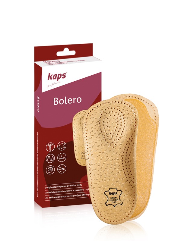 Напівустілки виготовлені з профільованого матеріалу і овечої шкіри, яка швидко поглинає вологу. Kaps Bolero запобігають падінню поздовжнього і поперечного склепінь стопи.