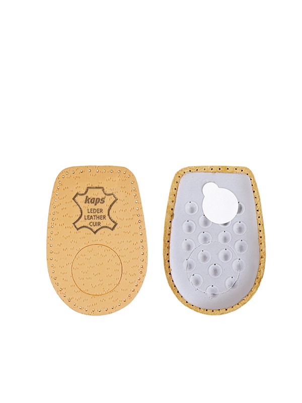 Під'яточники Kaps Heelmed виготовлені з овечої шкіри і латексної піни, яка відмінно поглинає удари при зіткненні стопи з твердою поверхнею. Вироби мають прорізану ділянку у формі диска. Після того, як від під'яточника видаляється прорізаний диск, отриманий отвір створює безпечну зону, в якій пошкоджене шпорою місце захищене від тиску з боку твердої поверхні взуття. Це гарантує комфортні прогулянки без больових відчуттів.
