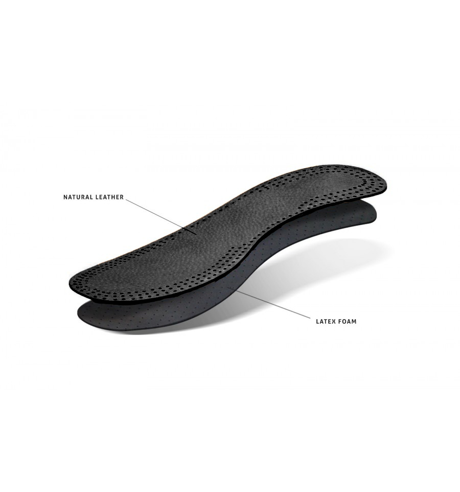 Шкіряні устілки Kaps Leather Carbon - зручні, елегантні вироби для максимального комфорту при ходьбі. Вони щільно прилягають до дна взуття. Перфорація шкіри і латексна піна забезпечують відмінну прохідність повітря, дозволяючи ногам дихати. Завдяки наявності активованого вугілля в складі латексної піни, устілки поглинають неприємні запахи, мають відмінні амортизаційні властивості. Підходять для використання з відкритим і напіввідкритим, повсякденним і вечірнім взуттям.