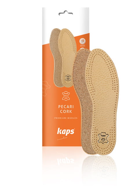 Шкіряні устілки Kaps Pecari Cork - практичні, зручні, мають приємний естетичний вигляд. Виготовлені із овечої шкіри рослинного дублення без PCP. Перфорація шкіри сприяє циркуляції повітря у взутті. Натуральне коркове дерево забезпечує хорошу ізоляцію, поглинає мікроудари, не вбирає вологу, має антистатичні властивості.