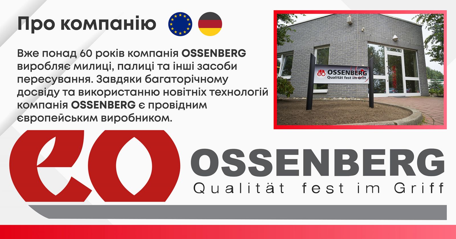 Полегшені милиці з регулюванням по висоті. Милиці Ossenberg Klassiker виготовлені з високоякісного алюмінію, що пройшов обробку анодуванням, це в рази збільшує термін придатності і міцність матеріалу. Ергономічна рукоятка виготовлена з високоякісного пластику. Система фіксації за допомогою кнопкового замка одним натисканням дозволяє відрегулювати потрібну висоту. Милиці також оснащені гумовими наконечниками з металевою вставкою, що значно подовжує термін використання. В рукоятку вбудовані світловідбивачі з обох сторін для безпечного пересування в темний час доби.