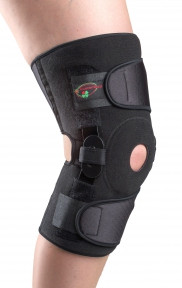 Ортез оснащений двома біомеханічними поліцентричними шарнірами забезпечує напівжорстку ступінь фіксації, бічну стабілізацію і розвантаження колінного суглобу.