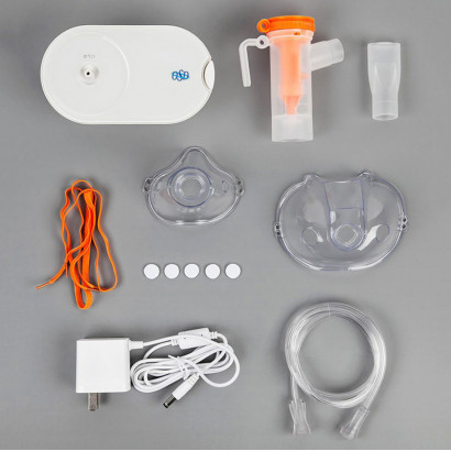- Комплектація: небулайзер; небула; дитяча та доросла маски; сумка для зберігання; адаптер; мундштук; з’єднувальна трубка; повітряні фільтри
