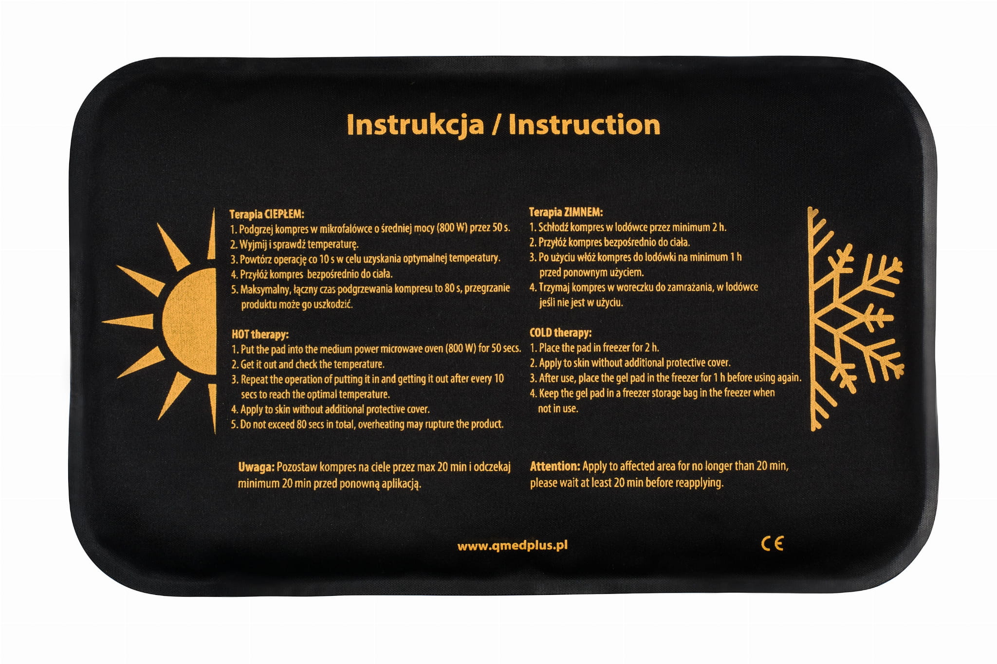 Qmed Hot Cold Pack – це компреси для терапії теплом та холодом. Компрес використовують як першу медичну допомогу при гематомах, забитих місцях, розтягуваннях, травмах. Залежно від виду болю його роблять гарячим чи холодним, утримує необхідну температуру протягом тривалого.