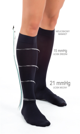 Професійна лінія шкарпеток для подорожуючих PANI TERESA® TRAVEL, стимулюючи кровообіг, забезпечує ногам відчуття комфорту, надає полегшення втомленим ногам. У шкарпетках використовують змінний натиск на ступню на основі 1 класу компресії (15-21 мм рт.ст.), сильніший на щиколотці, що поступово послаблюється у коліні, аби полегшити навантаження на втомлені ноги. Якщо ви проводите багато часу у машині, в літаку, офісі, сидячи або стоячи, страждаєте від болю та набряку в ногах, продукція TERESA® TRAVEL тільки для Вас!