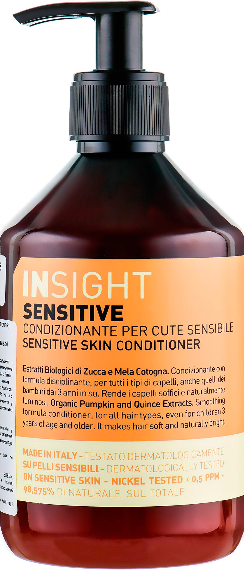 Insight Sensitive Skin Conditioner - кондиціонер для волосся, який увійшов у спеціальну лінійку засобів, створених провідними експертами відомого італійського бренду Insight для власниць чутливої шкіри голови. Регулярне застосування б'юті-продукту, краще – у парі з шампунем та маскою з тієї ж серії, дасть можливість уникнути подразнення епідермісу, що негативно позначається на стані локонів.