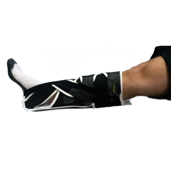 Деротаційний чобіт фіксує гомілковостопний суглоб, а також коригує положення стопи, запобігає повороту ноги вправо або вліво. Стабілізує горизонтальне положення ніг у ліжку, зберігаючи ноги під прямим кутом без бокового обмежувача.