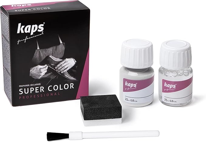 Фарба для взуття + засіб для фарбування Kaps Super Color + Preparer 25 ml використовується для натуральної шкіри, текстилю та синтетики. Має водостійкі властивості. Добре відновлює колір пофарбованої поверхні та зберігає його на тривалий час.