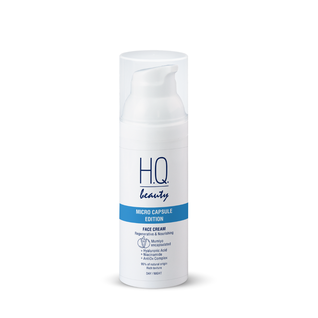 Інноваційна технологія для регенерації, тривалого зволоження та живлення шкіри обличчя на основі мікроінкапсуляції муміє в гіалуроновій кислоті.